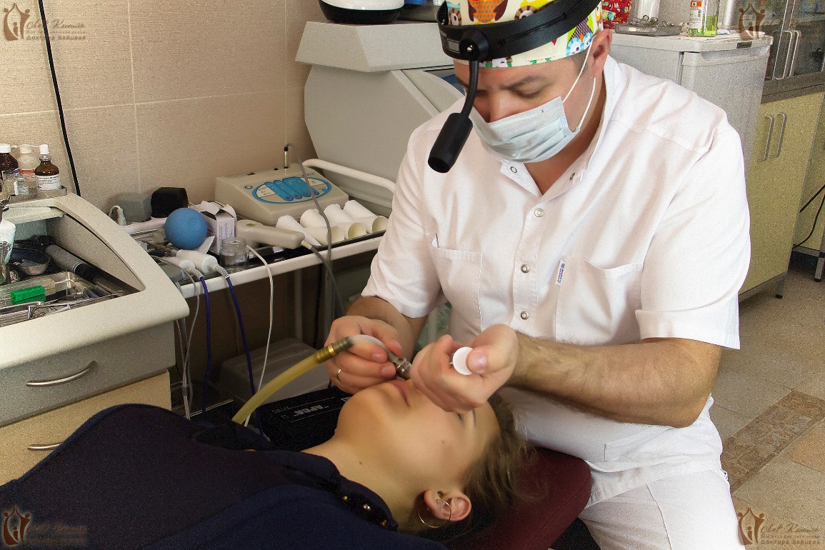 - Первичные лечебные манипуляции. Сразу после консультации, в зависимости от диагноза и состояния больного проводятся процедуры, направленные на очищение и санацию. Это может быть бережное промывание («кукушка») или орошение слизистой специальными лекарственными растворами для снятия отёка и удаления патологического содержимого.