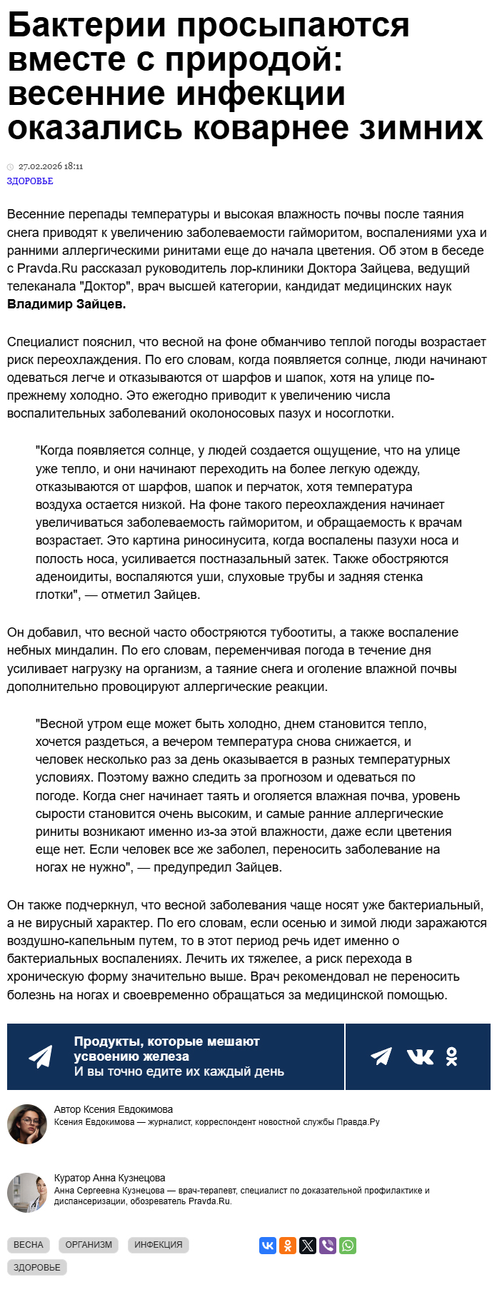 Сайт pravda.ru - Бактерии просыпаются вместе с природой: весенние инфекции оказались коварнее зимних