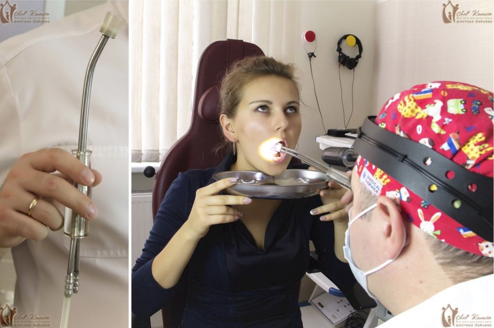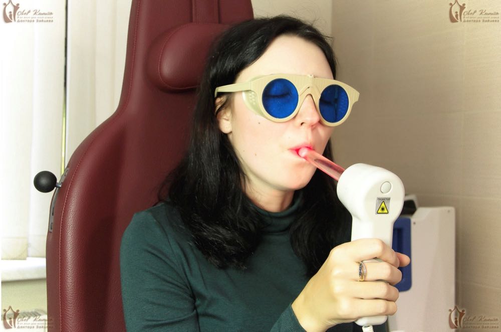 Источник лазерного излучения можно установить в полость рта и воздействовать в непосредственной близости от нёбных миндалин и слизистой оболочки задней стенки глотки, добиваясь хороших результатов.